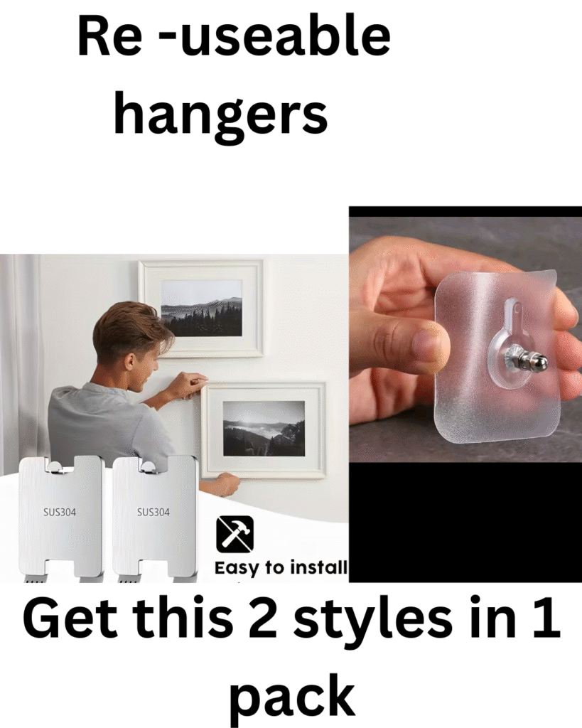 Get A SET 8PCS OF THE REUSABLE HANGERS + 12PCS TRANSPARENT HOOKS @ N20,000+ free delivery pay on delivery.